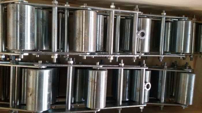 第二步:將鏈碼小心從箱中取出按順序逐節(jié)裝連接好,平放在膠帶機上,并將鏈碼兩端掛孔掛上。頭側直接鉤在掛環(huán)上,尾側用軟繩套住尾端鏈栓,固定在掛架上。